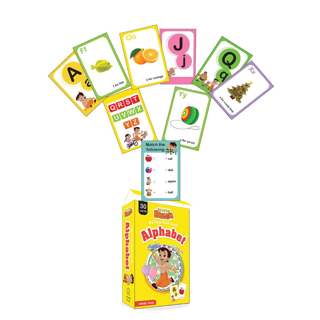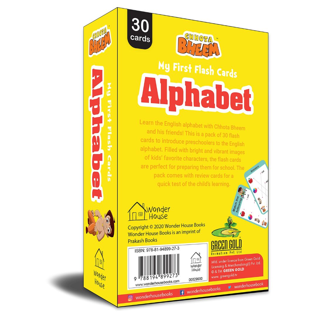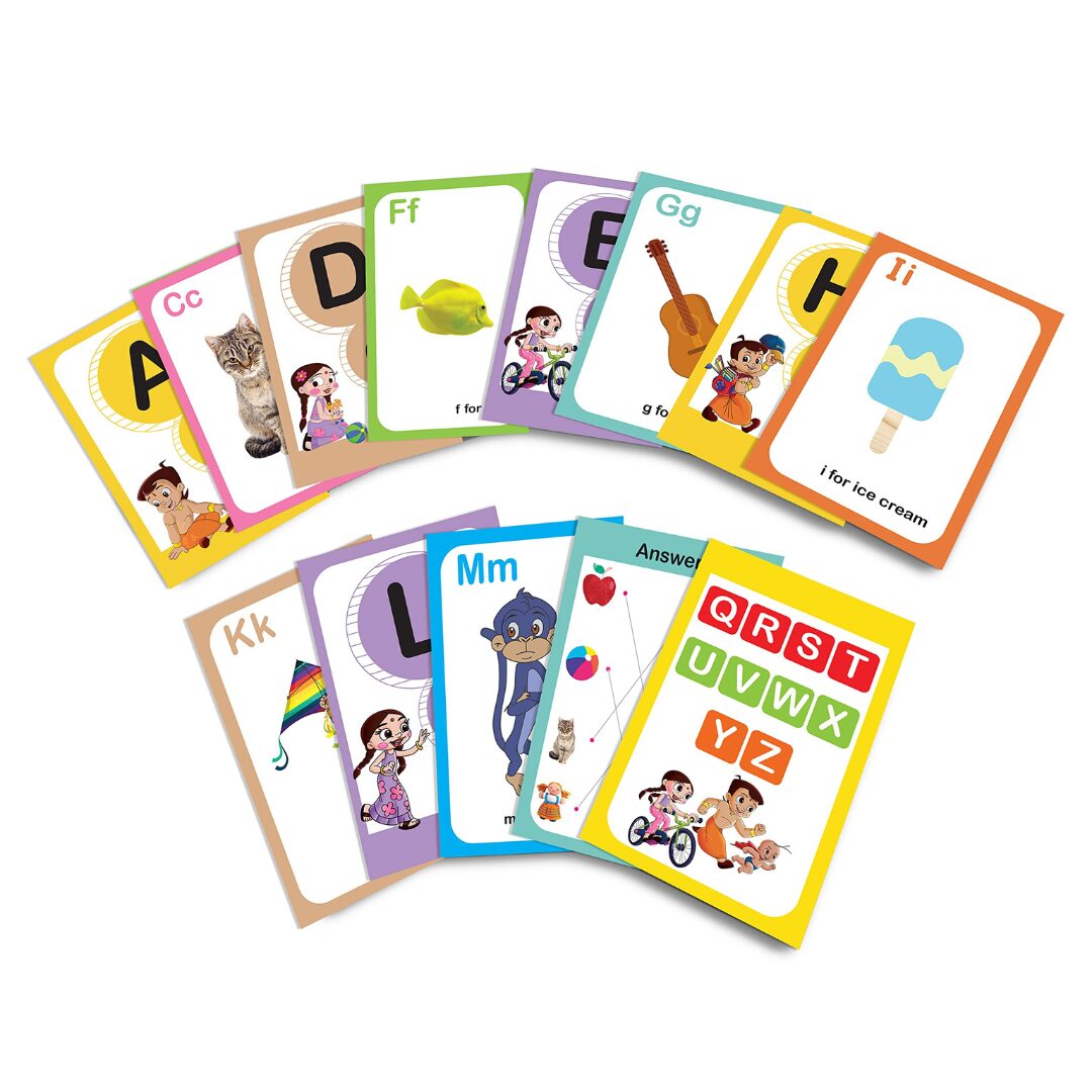 The Chota Bheem alphabets flash cards is easy way for childrens to learn alphabets.
