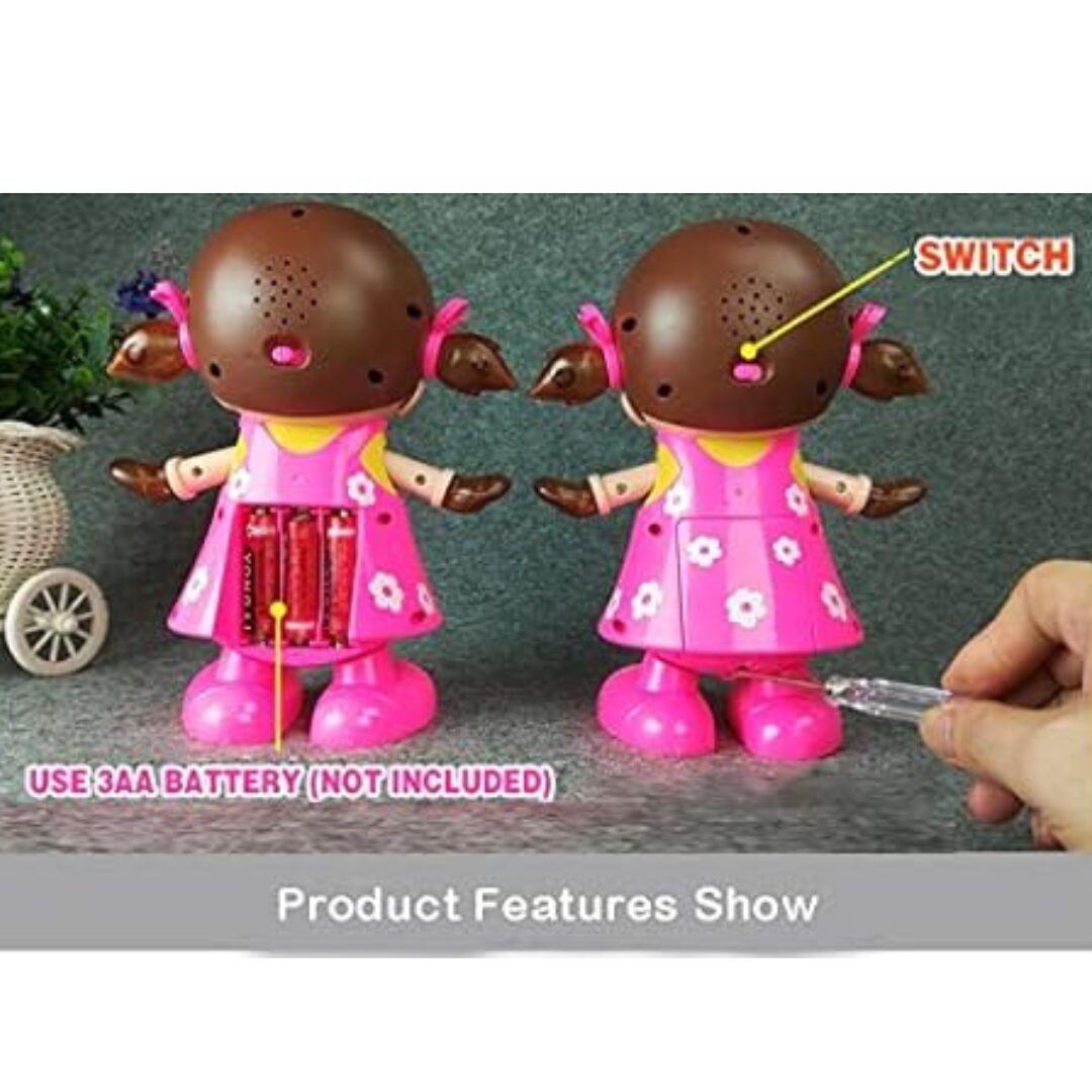 The doll features an easy-to-use On/Off switch located behind its head, allowing parents to quickly turn it on or off as needed. Once activated, the doll delights with brilliant musical sounds and a flashing light effect, creating an engaging and entertaining atmosphere for children.Ideal for birthdays, holidays, or just because, this cute Dancing Girl Doll makes a wonderful gift that will spark joy and creativity in any child. Please note that this toy requires 3 AA batteries, which are not included in the package.