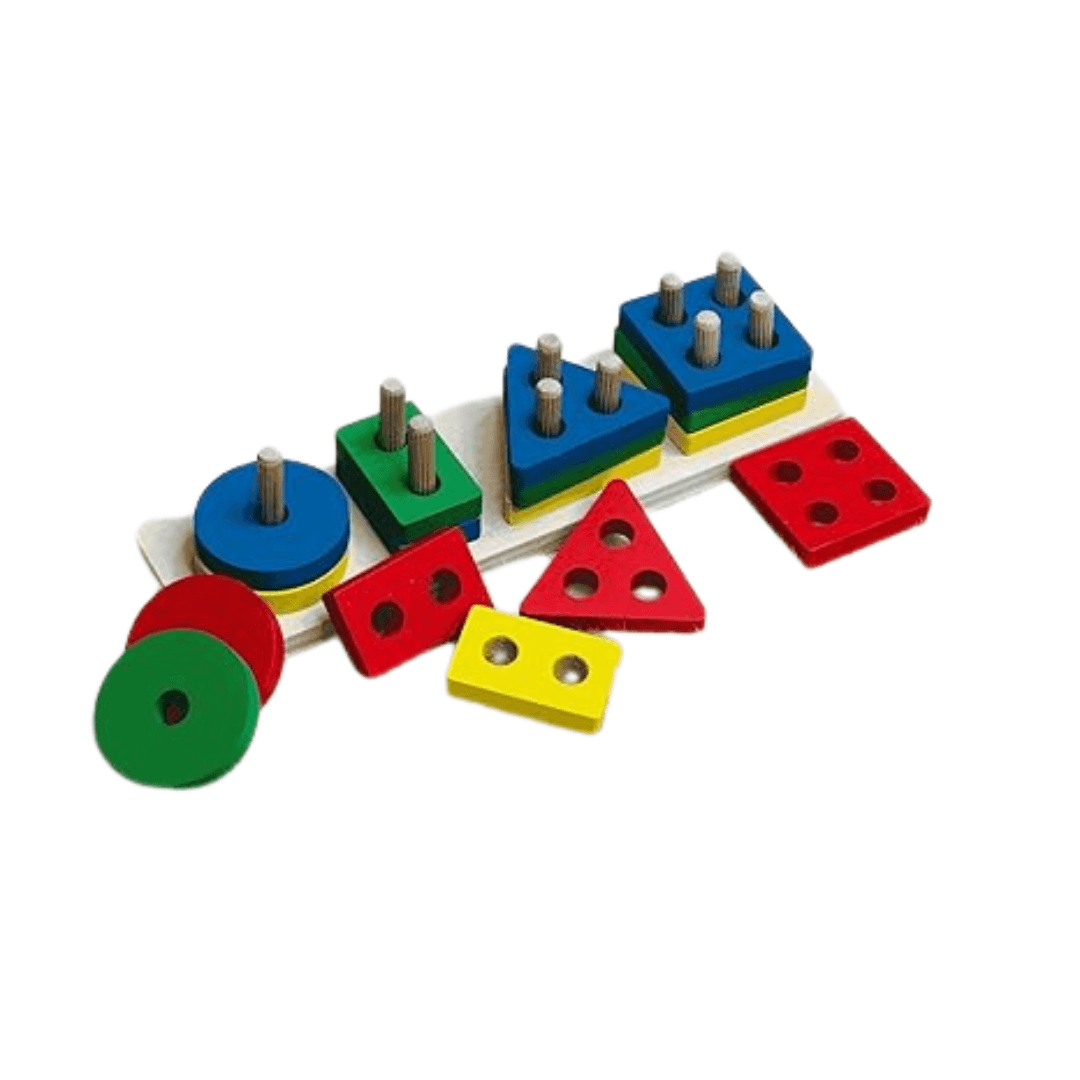 The Wooden Geometric Shape sorter set is a beautifully crafted educational toy designed to introduce young children to the world of shapes, colors, and early learning concepts. Featuring four basic geometric shapes—circles, triangles, rectangles, and squares—this toy encourages children to recognize and arrange different shapes through hands-on play. Each piece comes in vibrant, eye-catching colors that make learning more engaging and fun.
