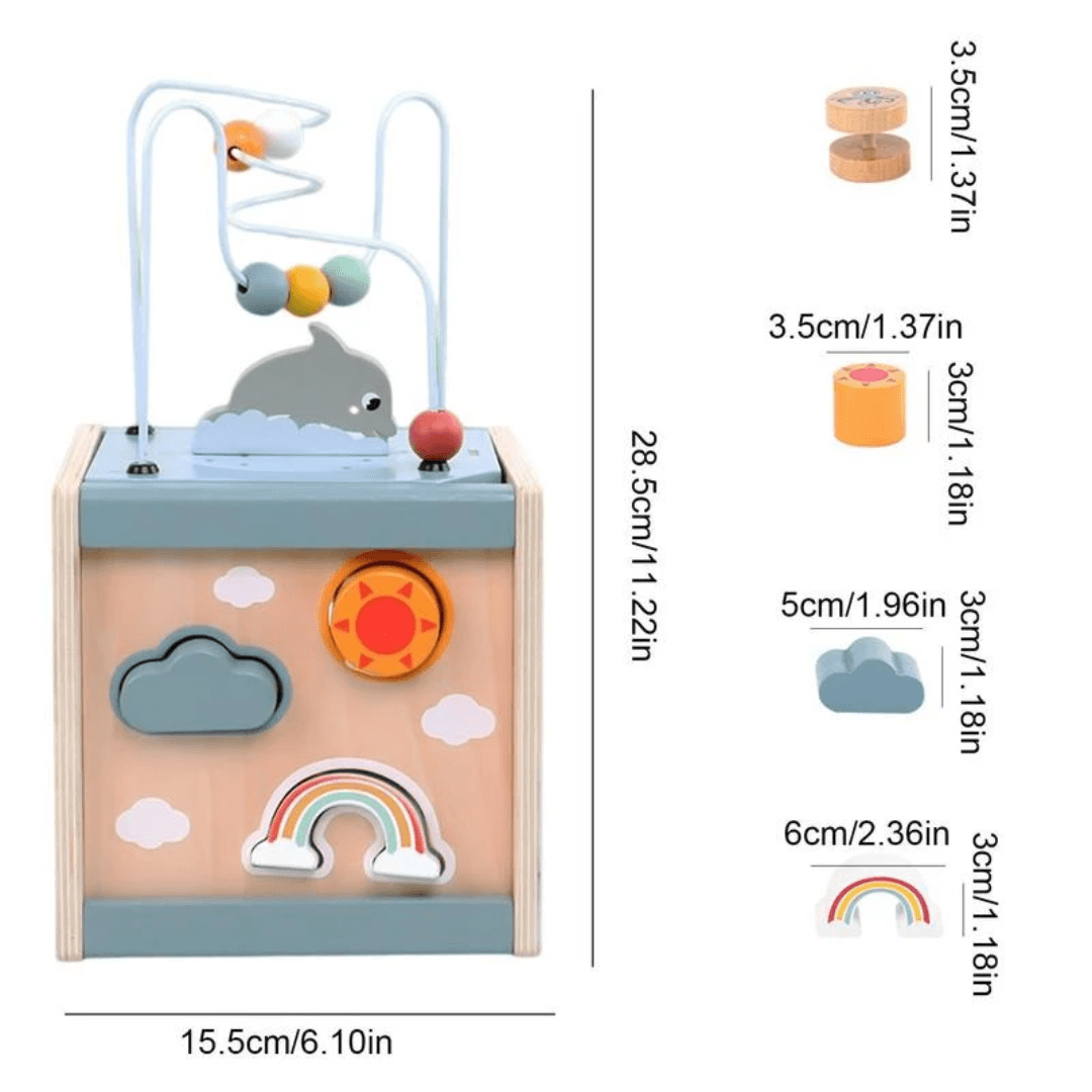 Cylinder: 3.5*3cm Rainbow blocks: 6*3*3cm Cloud blocks: 5*2.7*3cm