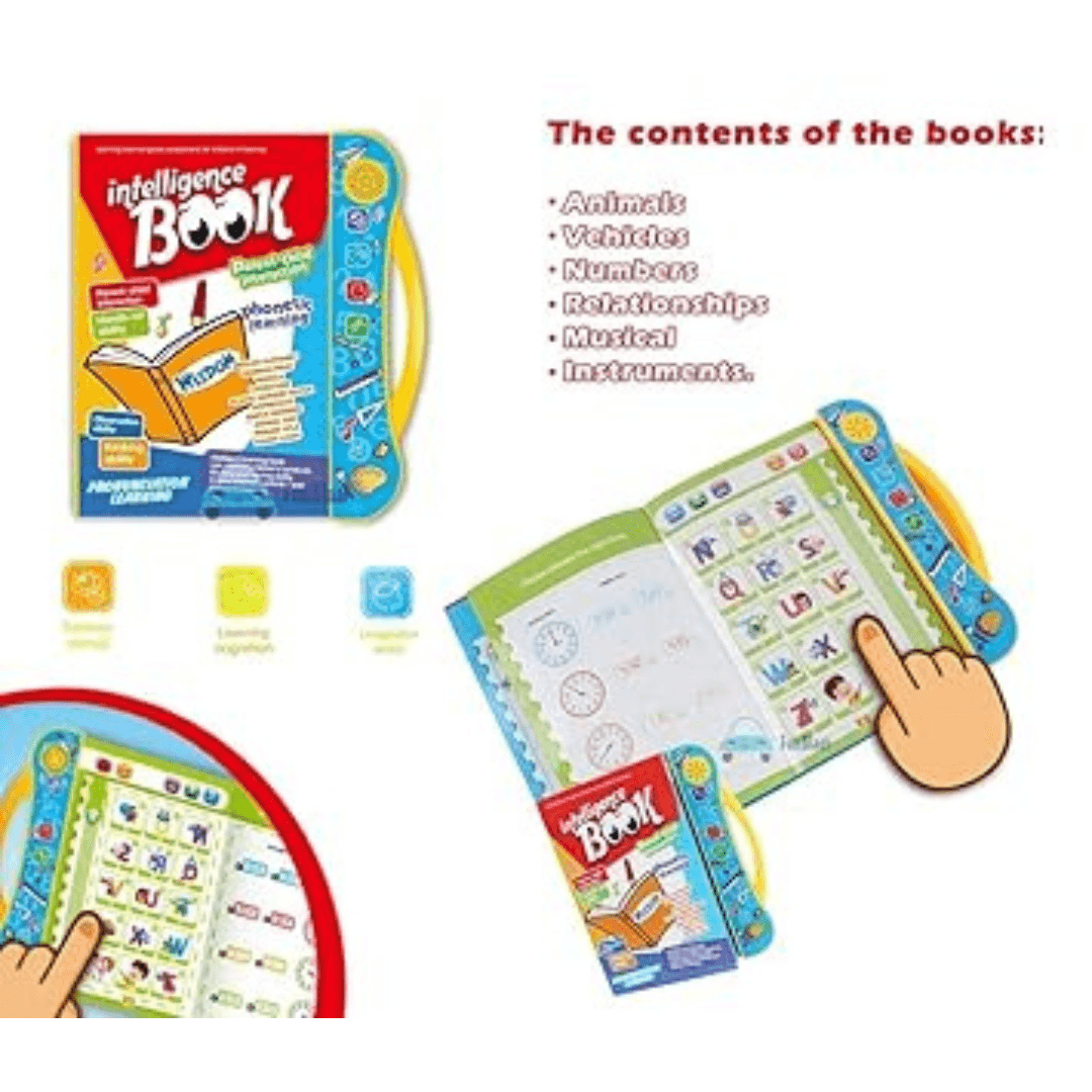 The Intelligent BooK is a fantastic learning tool designed to help young children develop their knowledge of alphabets, spellings, numbers, and more. With multiple interactive modes, this book features 10 engaging pages that cover a variety of topics, including letters, numbers, fruits, animals, vehicles, relationships, and musical instruments. Each page contains a button that, when pressed, plays the sound of the letter, word, and spelling, helping children connect sounds with letters and words in a fun, engaging way.