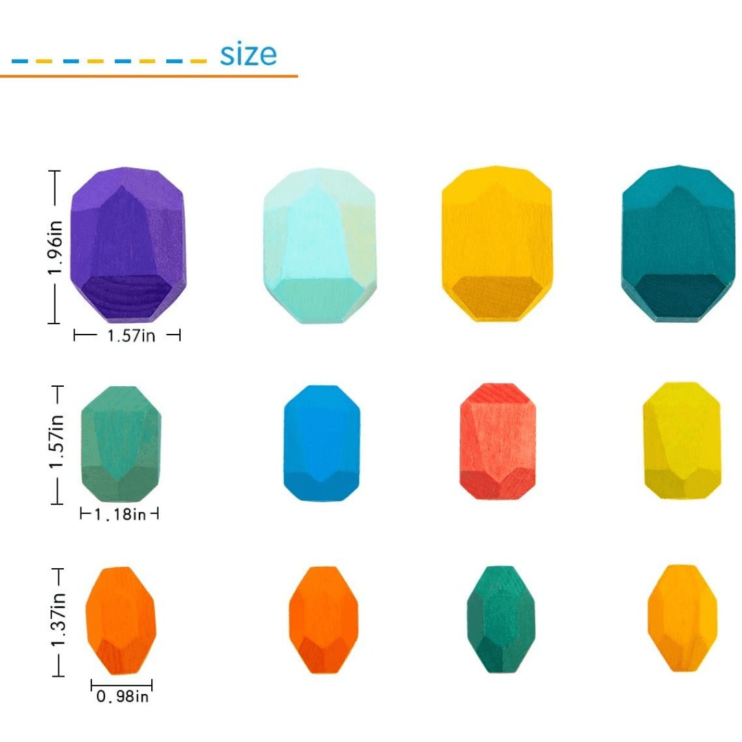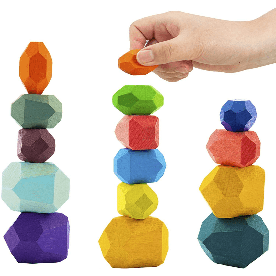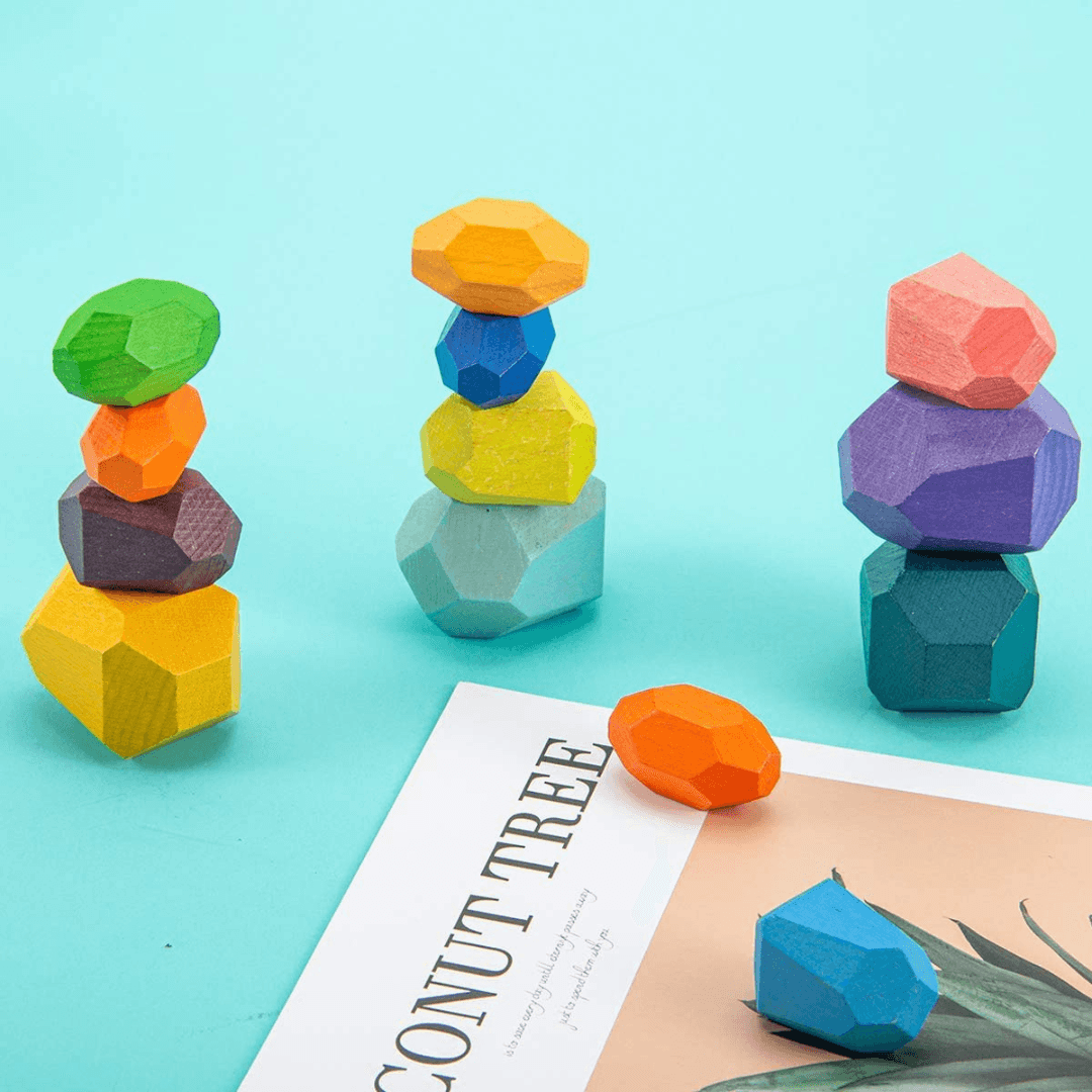 Stone balance building blocks are made of wood. The outer layer of the stone is coated with a layer of environmentally friendly Hand-polishing color paint, non-toxic, safe, and light in weight.