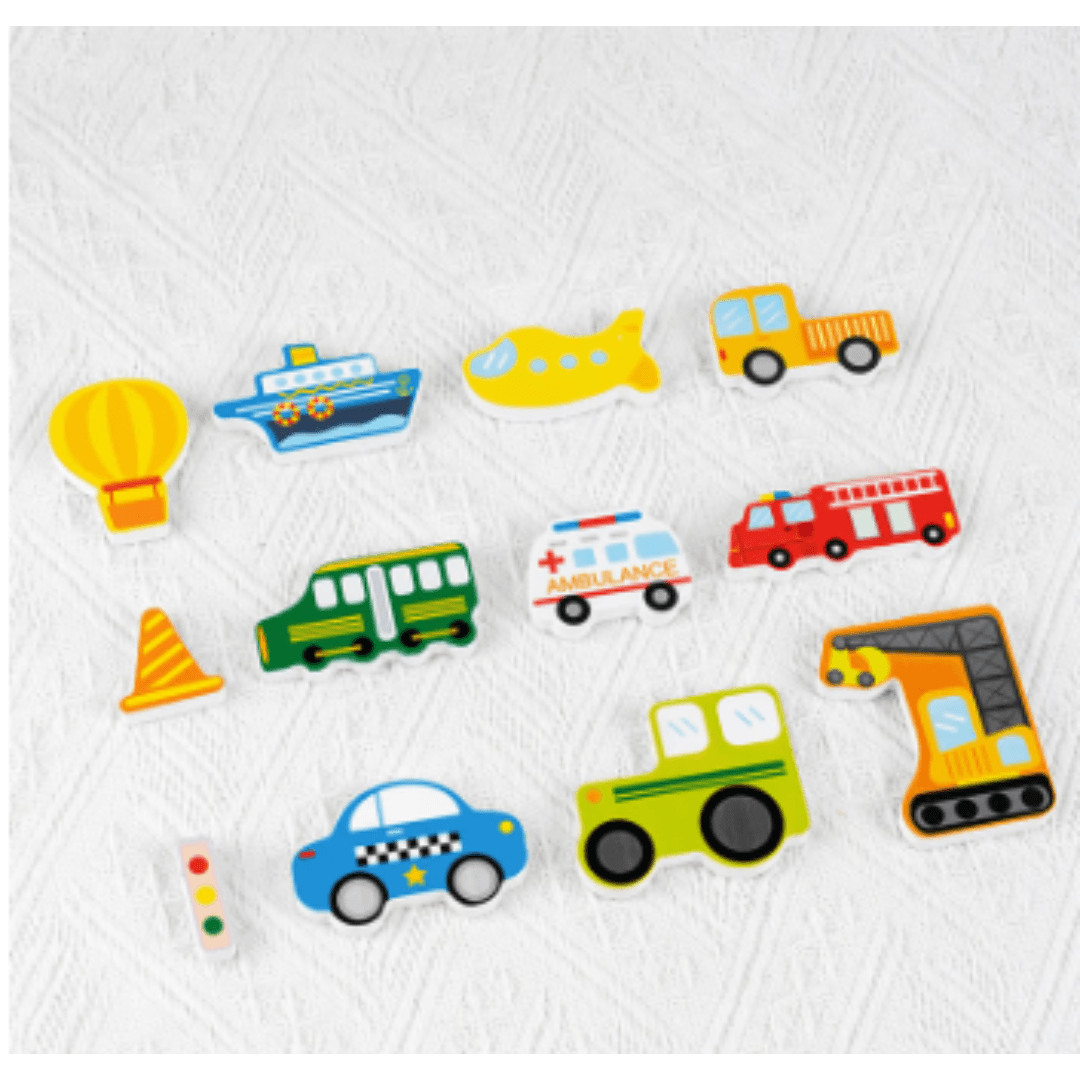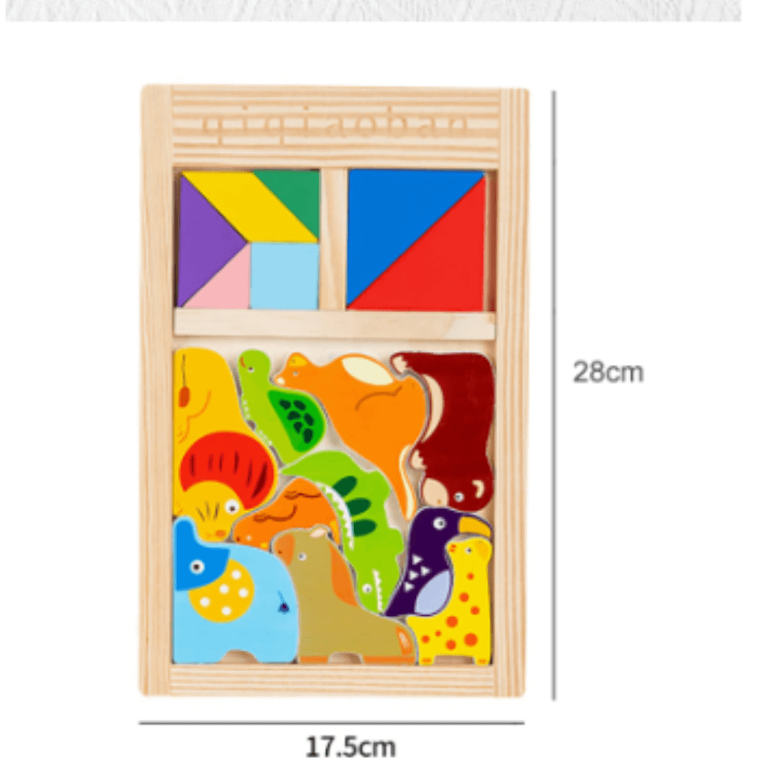 The Wooden toy Puzzle Board is a fun, educational, and interactive game designed to enhance early learning in children. This puzzle set features colorful and engaging 3D vehicle-shaped pieces such as cars, trucks, buses, and more, each crafted from safe, durable, and eco-friendly wood. Perfect for toddlers and young children, the puzzle helps introduce them to different types of vehicles while developing essential cognitive and motor skills.Combining elements of a tangram puzzle and shape recognition, this encourages kids to match vehicle pieces into the correct slots on the board. As they play, children improve their hand-eye coordination, fine motor skills, spatial awareness, and problem-solving abilities. The puzzle also helps in learning shapes, colors, and character association, making it an excellent early learning tool.